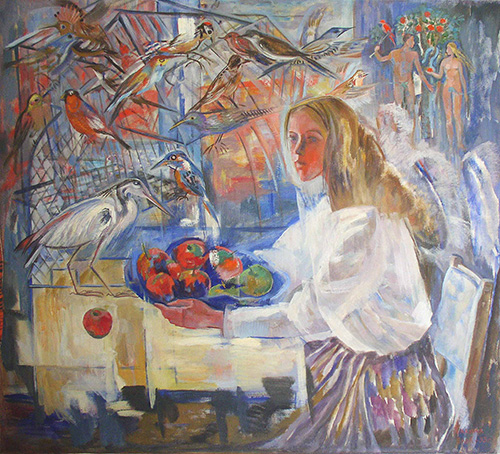 Свої бажання і вміння вона майстерно втілює у створення надзвичайно виразних, підкреслено-декоративних картин.