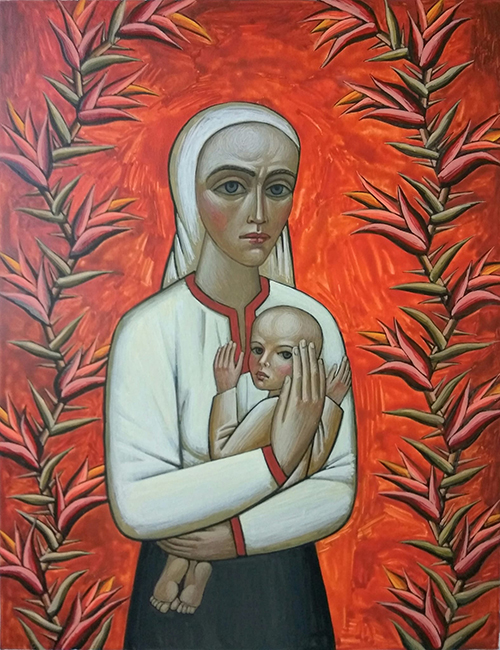 Прославляє матір-Берегиню роду людського Микола Кутняхов зворушливим образом матері з дитиною. А на полотні Олександра Мельника красномовно промовляє «Неопалима» мати, яка спроможна перенести значні випробовування заради своїх дітей. Піднята супер-сучасна тема в контексті жорстоких воєнних подій.