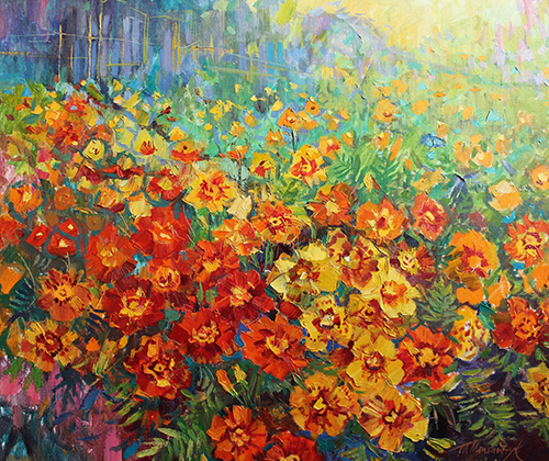 Художники відгукнулися своїми творами для он-лайн виставки. І так захотілося мирного неба, нашої української пісні, спокою і родинного затишку, що душа наповнилася мелодією, яку створив композитор В. Верменин. Текст пісні «Чорнобривці», яка стала хітом нашого народу, написав М.Сингаївський у Франції в 1957 році. Проста квітка х терпким ароматом перетворилася у символ любові до матері – Берегині роду людського.
