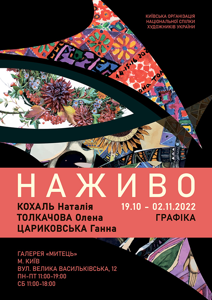 З 19 жовтня до 2 листопада 2022 року у галереї «Митець» буде експонуватись виставка-проєкт трьох київських художниць Наталії Кохаль, Олени Толкачової та Ганни Цариковської «Наживо». Цей проєкт об’єднує графічні твори виконані в різних техніках і жанрах, які були створені під час війни, що точиться в Україні з 2014 року. Війна прийшла до кожного, набула реальних обрисів жахаючого божевілля руйнування і смерті, спонукала до культурного супротиву.