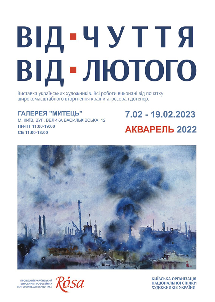 З 7 по 19 лютого 2023 року галерея “Митець” представлятиме виставку українських художників-акварелістів “Від*чуття. Від*лютого”.