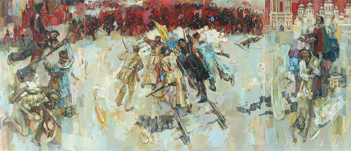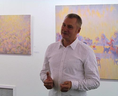 Виставка представлена творами заслужених художників України А.Зорка, О.Соловея, І.Пилипенка, М.Кутняхова, Г.Ягодкіна, членів НСПУ О.Карпенко, Г.Носенко, С.Кривенка, Ю.Качкіна, Г.Сергєєва, Н.Полуян-Внукової, О.Федька, Е.Межула, М.Саркісян, М.Соченка, Т.Недошовенко, І.Цюпки (1926-2007), М.Самохіна (1943-2009).