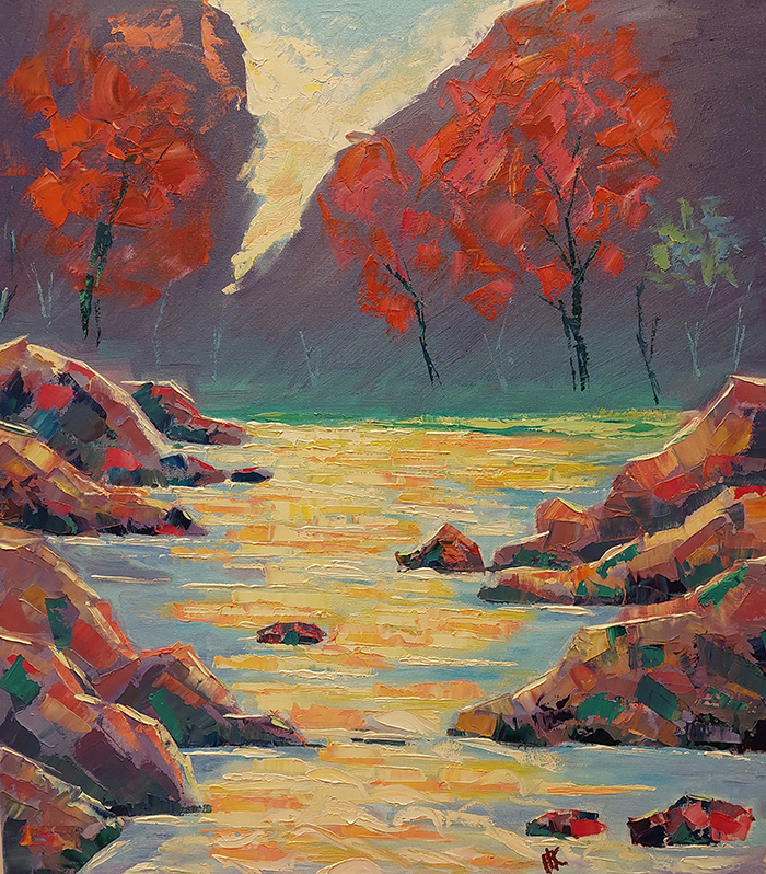 П.Кір’яков продовжує свій творчий пошук. Автор прагне досягти спрощення пейзажу, прагнучи передати не конкретний мотив, а його синтезовану колористичну сутність.