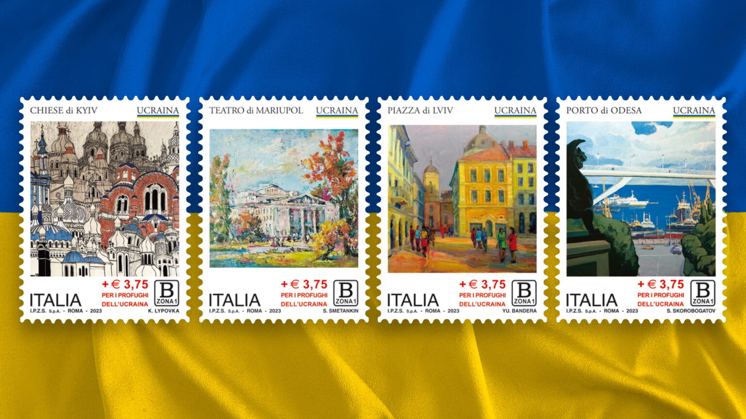 Загарбницькі наміри путінського режиму засуджує увесь світ. Війна розв’язана варварською державою, забирає життя тисяч людей, скалічує долі, стирає з лиця землі мирні міста, цивільні, культурно-мистецькі об’єкти. Те, що Україна на вірному визвольному шляху, підтверджують ряд міжнародних заходів спрямованих на підтримку українського народу. Так, нещодавно в Італії відбулася презентація чотирьох поштових марок, створених українськими художниками, на яких зображені міста, які попали під обстріл рашистів. Ініціатива проекту належить Міністерству економічного розвитку Італійської Республіки, а також особисто пану міністру Адольфо Урсо. Згідно інформації Посольства України в Італії, кошти отримані від продажу згаданої серії марок італійська сторона планує передати на гуманітарну підтримку України.