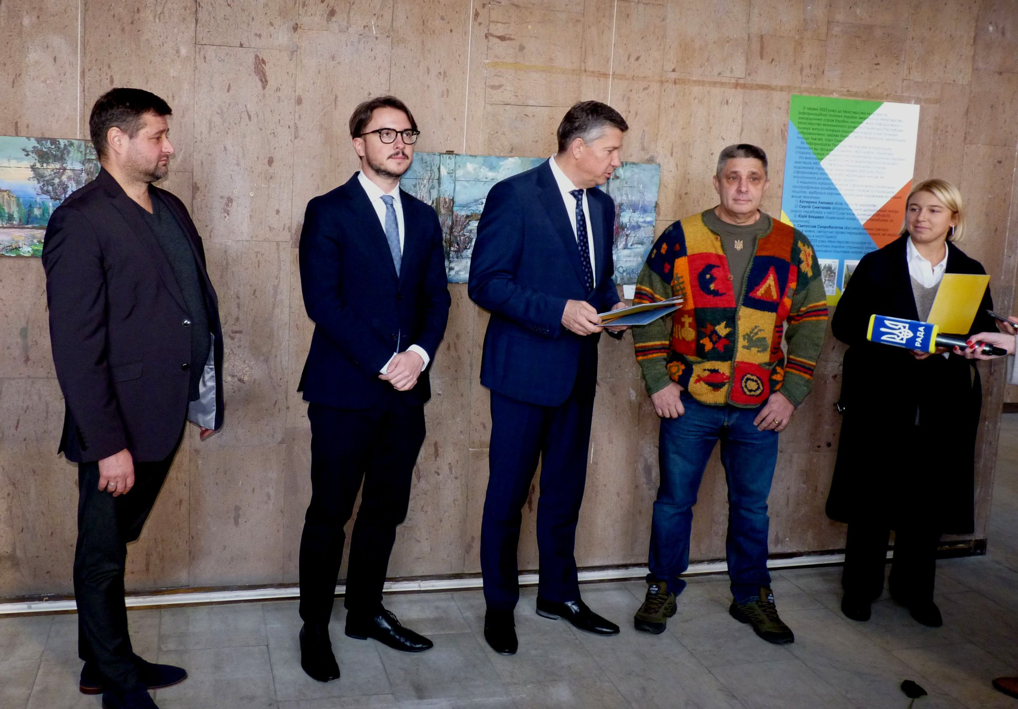 Урочиста акція відбулася в межах італійсько-українського благодійного проекту на підтримку України. У вітальному слові виконуючий обов’язки міністра культури та інформаційної політики України Ростислав Карандєєв зазначив, що даний проект свідчить, «що Італійська республіка підтримала увесь український народ в нашій рішучий боротьбі». Вручаючи художникам комплекти поштових марок та вітальні грамоти, Ростислав Володимирович подякував митцям за участь у миротворчому проекті, який наближає нашу перемогу…