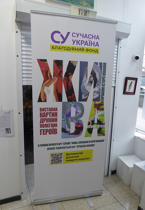 Галерея «МИТЕЦЬ» представила художню виставку розташовану на трьох локаціях: твори бійців ЗСУ під керівництвом підполковника медичної служби Інни Черненко; серія тематичних композицій вдів загиблих воїнів які віддали своє життя виборюючи свободу Україні під назвою «Живі. Справжні історії кохання», які представила г/о «Сучасна Україна» голова Олена Сокальська; картини відомих художників Київської організації НСХУ голова Микола Кутняхов – Юрія Вакуленка, Віктора Сидоренка, Миколи Кутняхова, Костянтина Чернявського, Анатолія Зорка, Олександра Мельника, Олеги Карпенко, Ірини Ситник, Андрія Котлярчука. Афіша запрошення дизайн Андрія Будника.